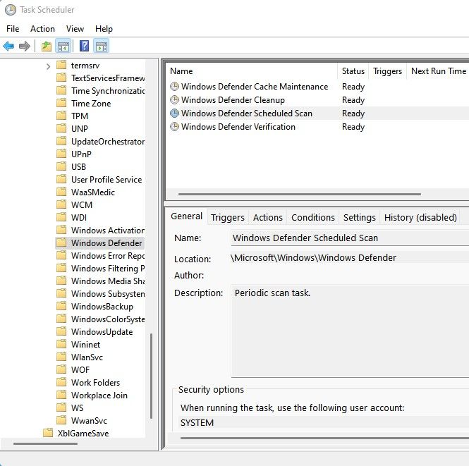 Step 2: Once the Task Scheduler is launched, expand the navigation pane on the left in the following order: Task Scheduler Library > Microsoft > Windows > Windows Defender